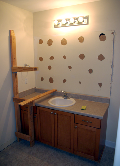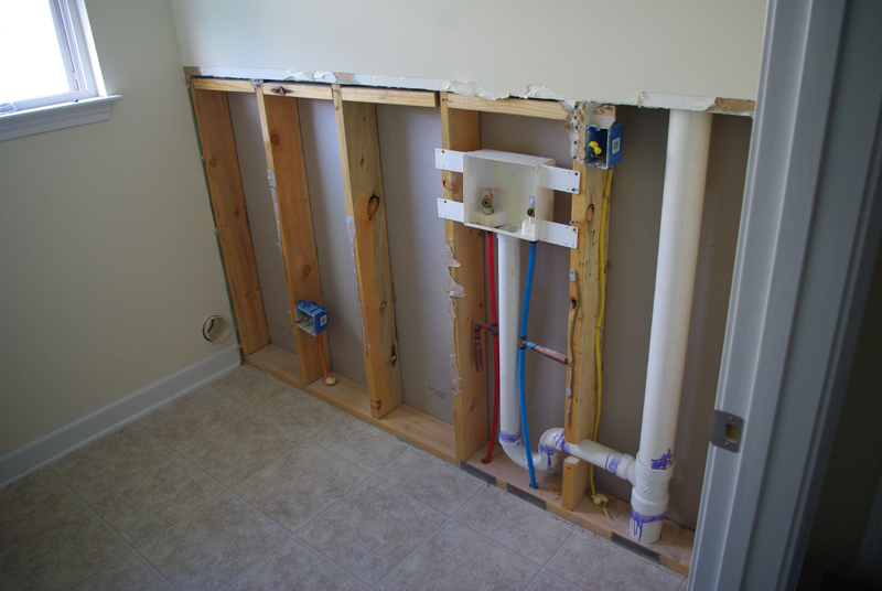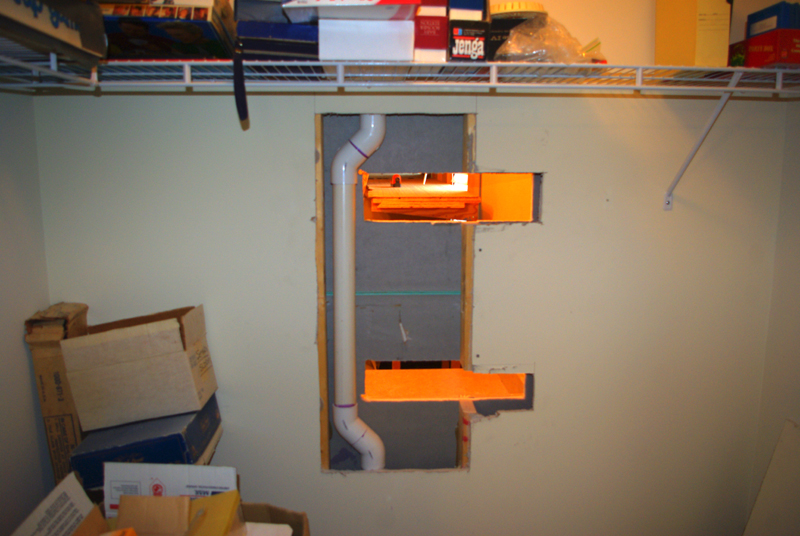 wall of the bathroom, we found an unexpected vent pipe. Luckily, we