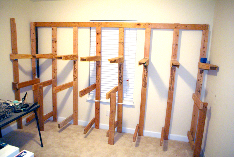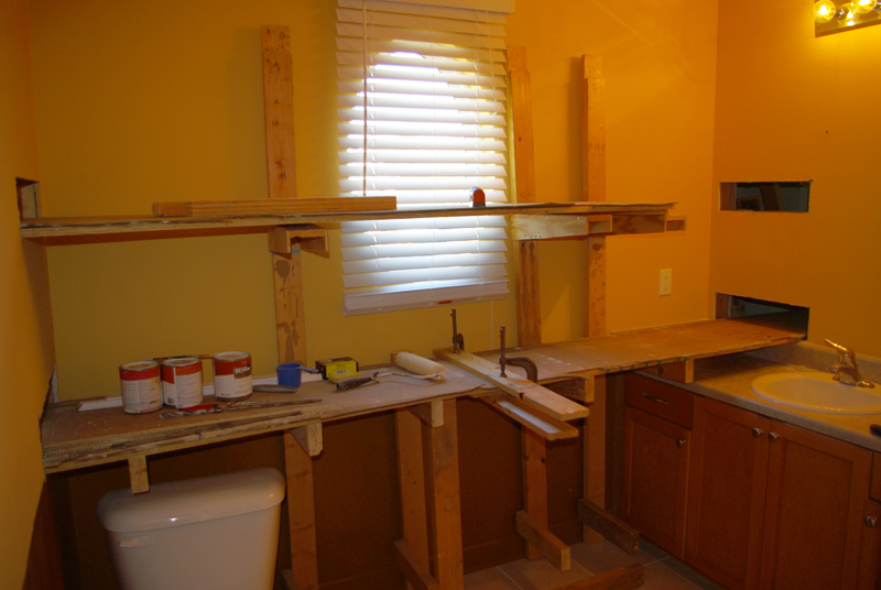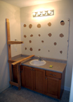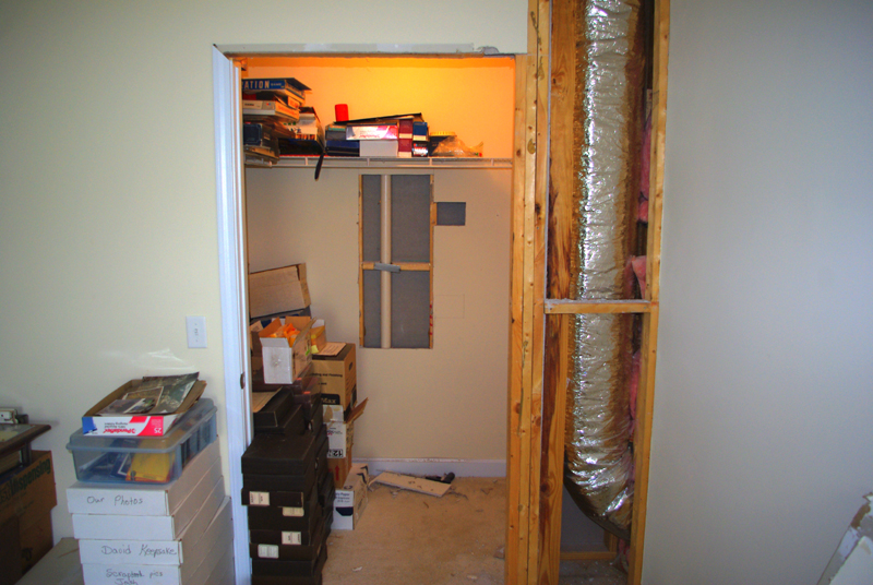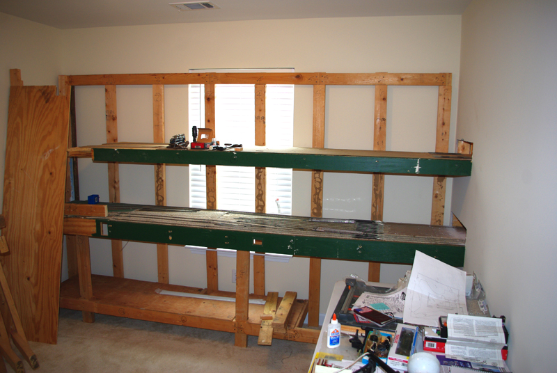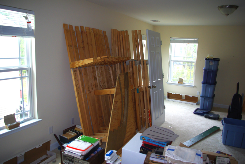 the staging yard will be cut into the west bathroom wall. This also let us know how far we needed